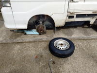 軽トラックの冬タイヤを夏タイヤに替える。