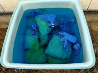 午前・水稲の種籾を水に浸ける(浸種)。